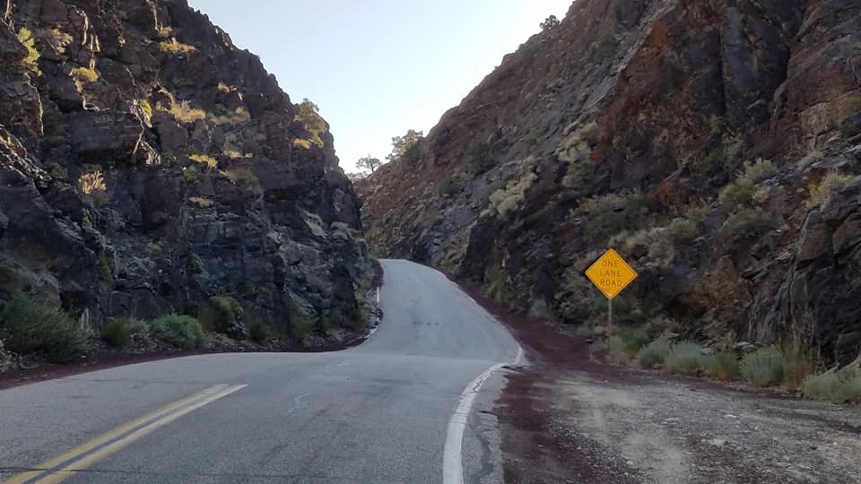 I came to an interesting narrowing of the road. It was clear that whoever constructed this road ran out of sufficient funds to blast more rock away. My two lane road turned into a single lane road. A single lane road with a grade to keep me busy while looking and listening for vehicles coming from either direction. This was an easy feat to accomplish since I was deep in a canyon in the middle of nowhere. If something was headed my way, I would surely hear it well in advance.