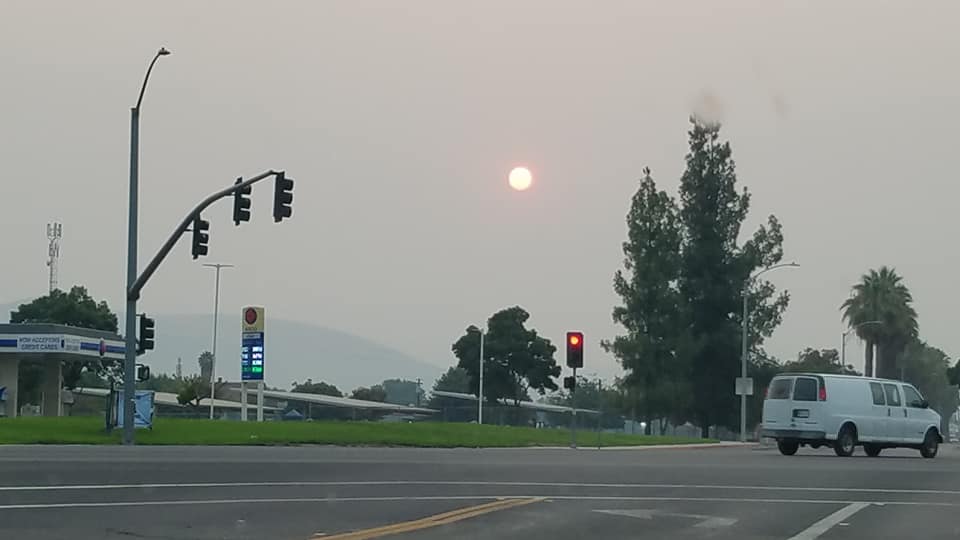 Since I was all packed up, I just started driving South home. This was the last climb on my list for the trip. When I stopped to get gas I took this picture of the sun. As you can see, it barely made it through all the smoke. Very apocalyptic indeed!