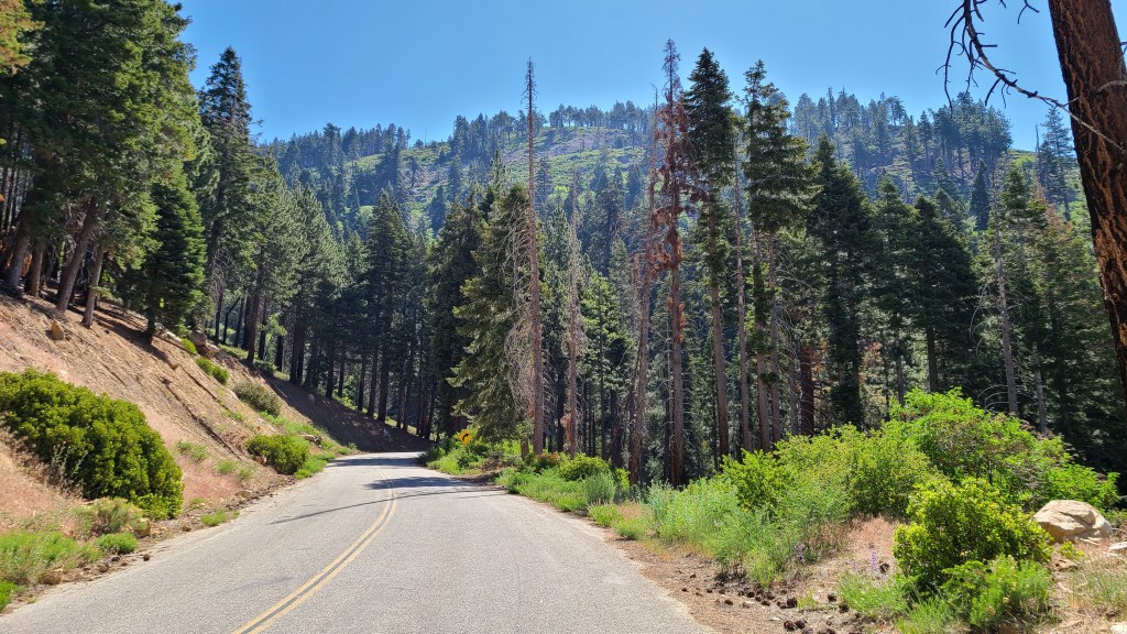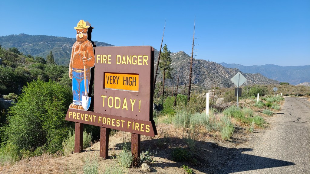 At 5,900 feet above sea level there were opposite messages going on. A reminder of our California drought next to running water. That also brought to my attention that I couldn’t see any snow on the mountain tops. Even last year in August I could see snow up high, but not this year. Not even a little patch. It was super dry out here. This is one of the reasons I did this trip earlier. Last year it was in the middle of the worst wildfires in California history. My thought is if I could get out earlier this year, I wouldn’t have to dodge the smoke like last year.